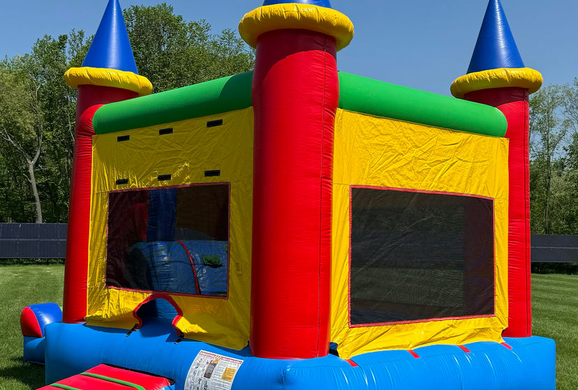 Embark on a royal adventure with our castle-themed bounce house with slide – the ultimate inflatable entertainment for your event! This enchanting castle design comes in vibrant shades of red, yellow, blue, and green, creating a visually captivating play space that will be the highlight of any gathering.